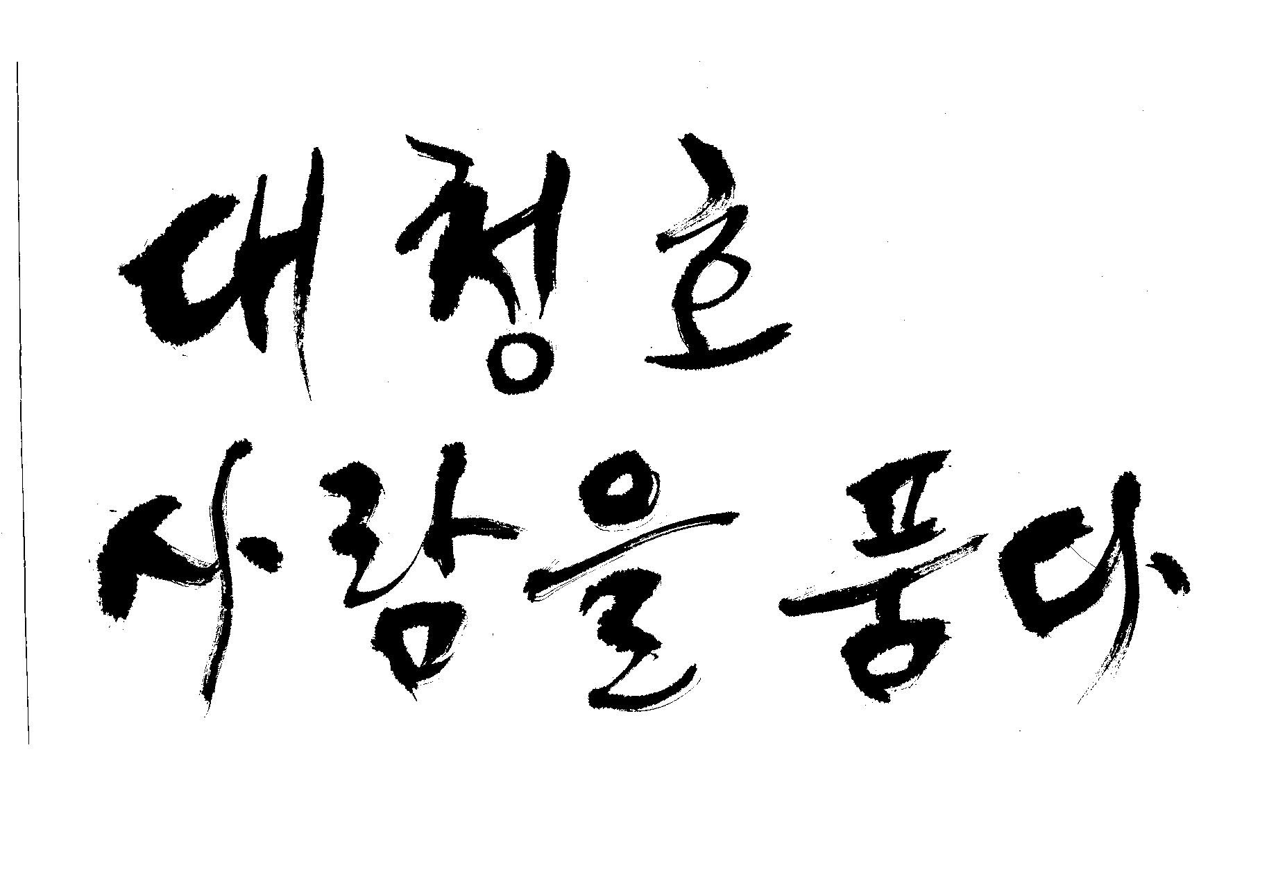 캘리 부탁드려요 김철호 일반 0 5455 2009.06.03 12:12 > > > > > 대청호 > > 사람을 품다 > > > > - 방송용 다큐멘터리에 들어갈겁니다 > > 죄송합니다만 빨리 부탁드려요 > > 두줄로 가운데 맞춤으로 써주세요 - > > > > 줄맞춤은 알아서... >